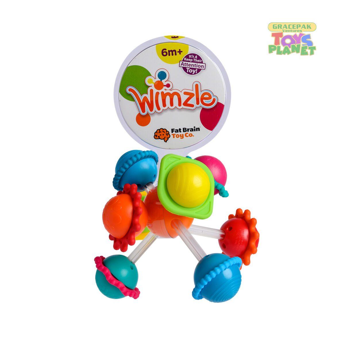 The Fat Brain Wimzle 6+Months slides back and forth at clever angles through the center ball with four bars which are vibrant and textured on ends. Each sphere features a uniquely shaped, spinning silicone ring built into the center to help the little fingers grab, feel, spin, squeeze, pull, and explore! Thrilling for the senses and wonderfully enlightening for young, developing brains, Wimzle will have your little one discovering and learning at every twist and turn.
