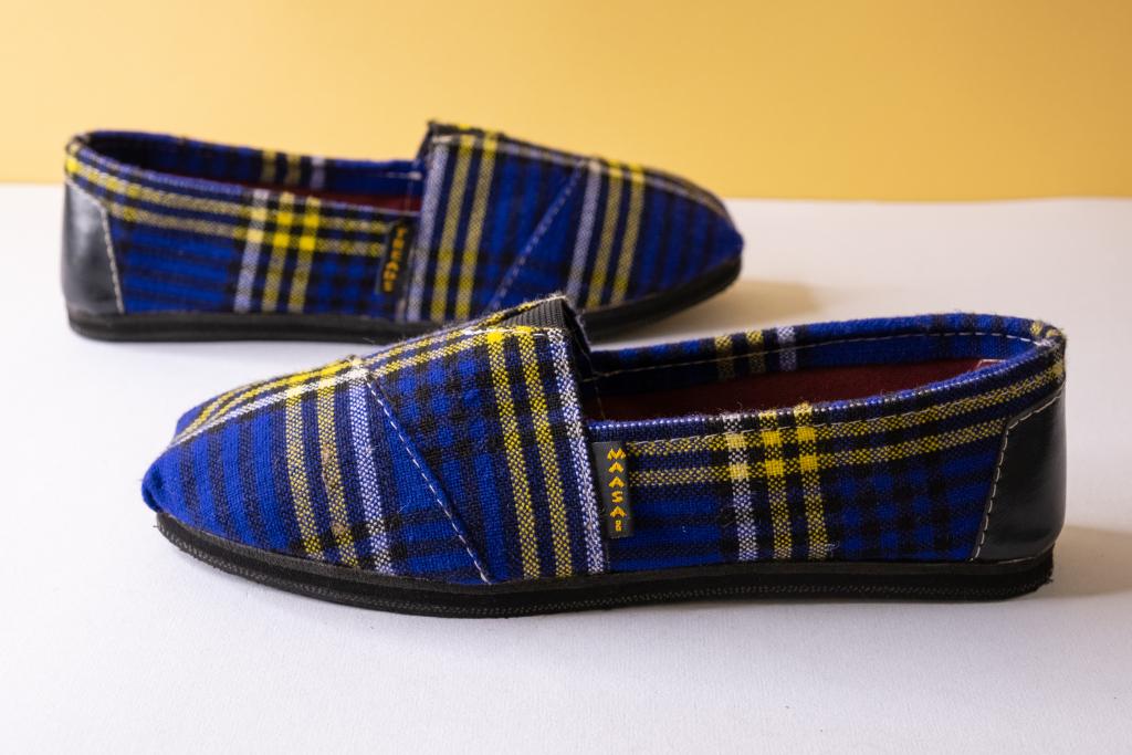 Hatua in swahili means taking a step.These unisex pair of shoes with leather are here to help you take each and every step in life cofidently and comfortably. Sole: Recycled tyre Upper: Cotton Maasai Shuka. Inner sole: leather. Sizes: 3-14UK